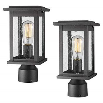 Emliviar Outdoor Post Light Fixtures 2 Pack, Exterior Pillar Light in Black Finish with Seeded Glass, 1803EW1-P-2PK *New* Retail Price: $119.99