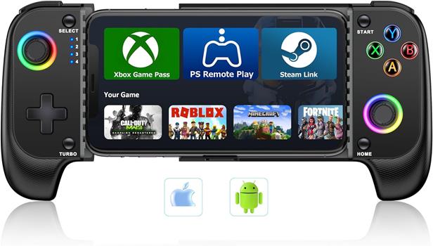 Wireless Phone Controller for iPhone/Android No Deadzone, Mobile Gaming Controller Support Xbox Game Pass, PlayStation, Steam Link, Call of Duty, Roblox, Minecraft, Cloud Gamepad for iOS with RGB *New* Retail Price: $49.99